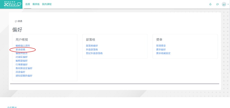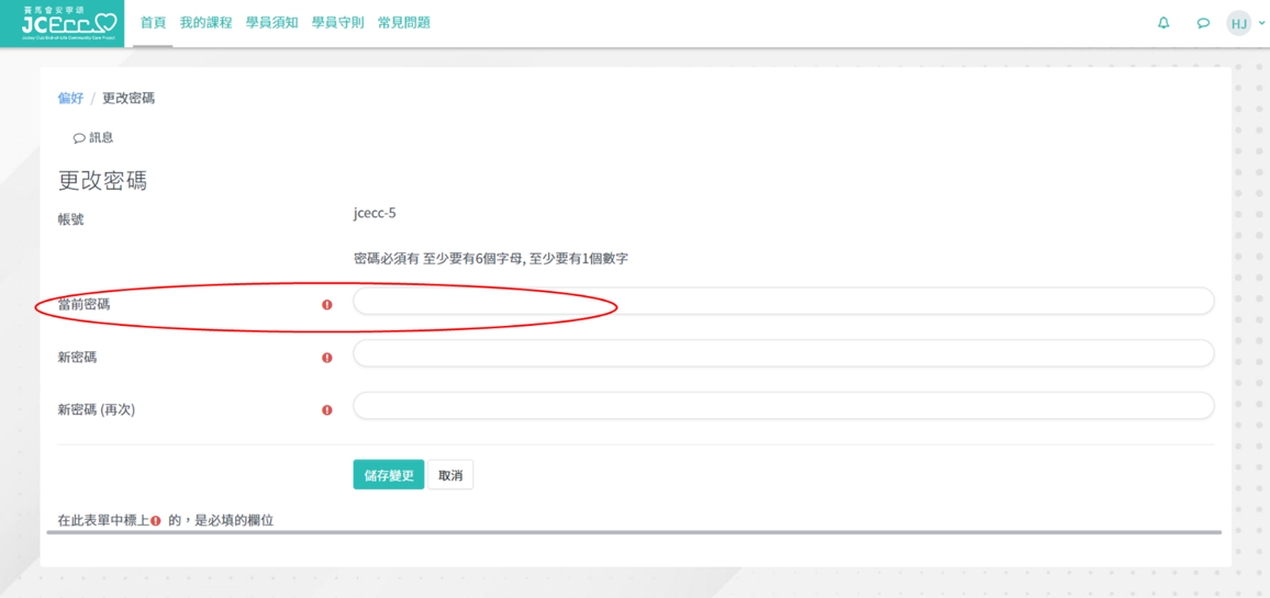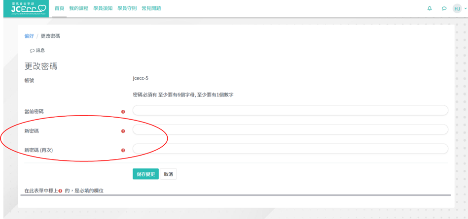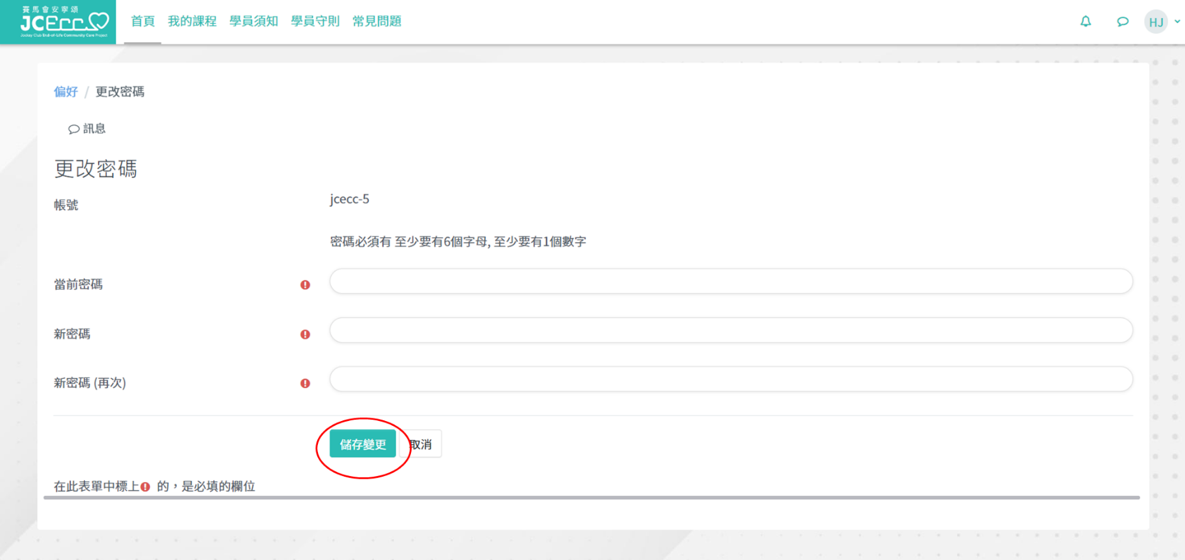 學員可自行於平台更改登入密碼,並依照以下步驟進行修改