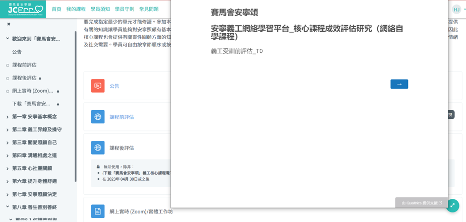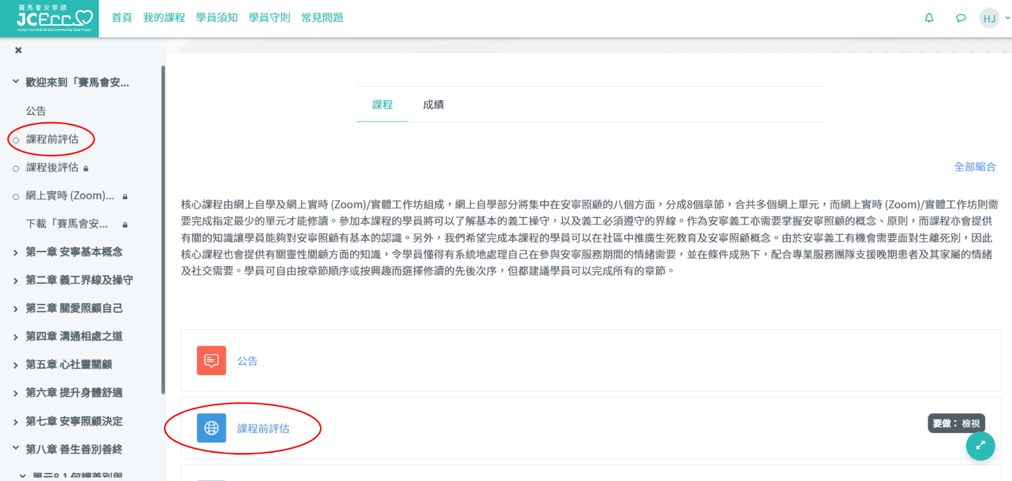 v.學員必須填妥課程前評估才能正式修讀每個章節,每個課程只需填寫一次。請按下【課程前評估】