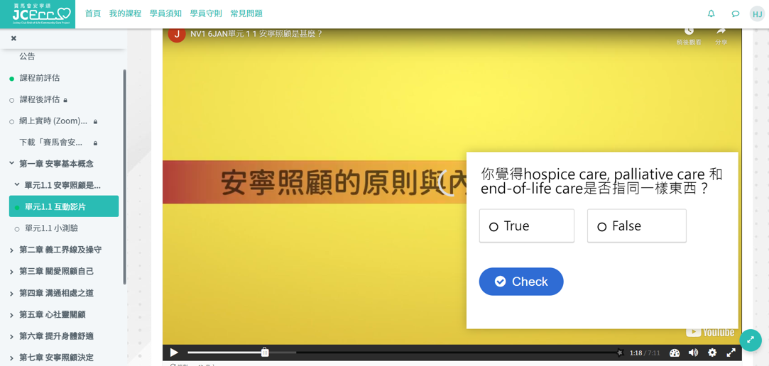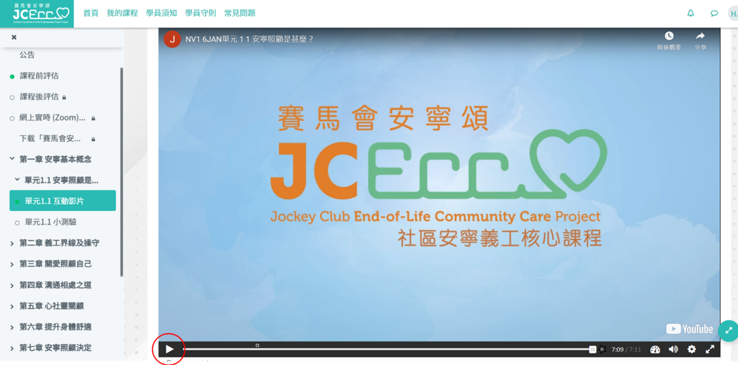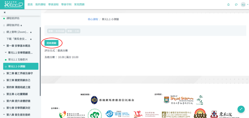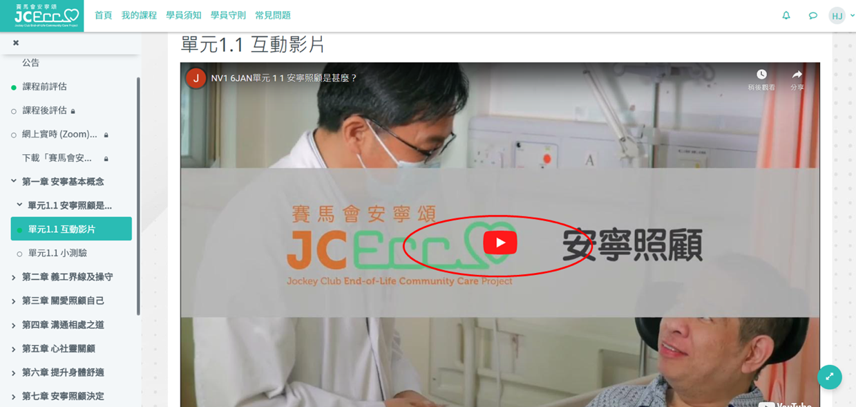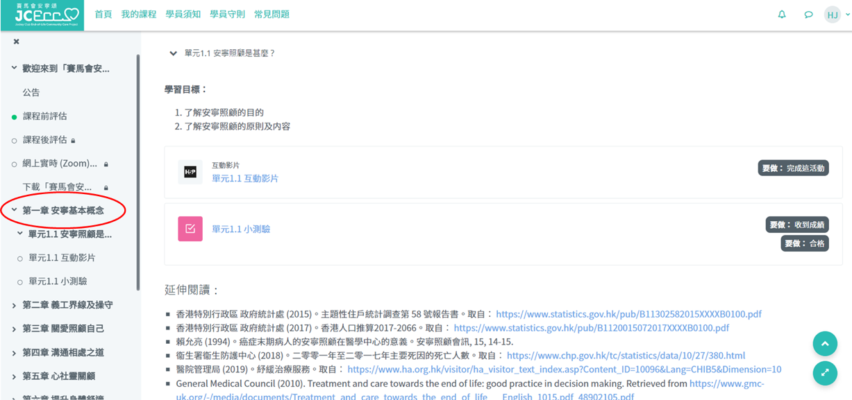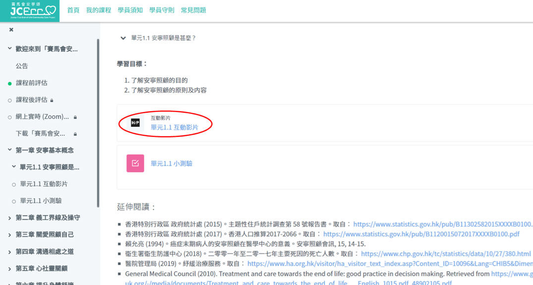 ix.學員選好單元後,便可以正式開始修讀網上課程 (詳情可參考Q.4如何收看學習影片及Q.5如何完成單元小測驗)