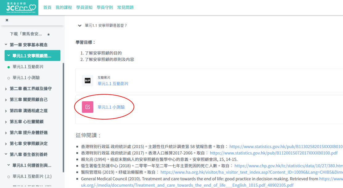 iii.只要完成及答對所有單元的小測驗,即代表網上自學課程的部分已完成。