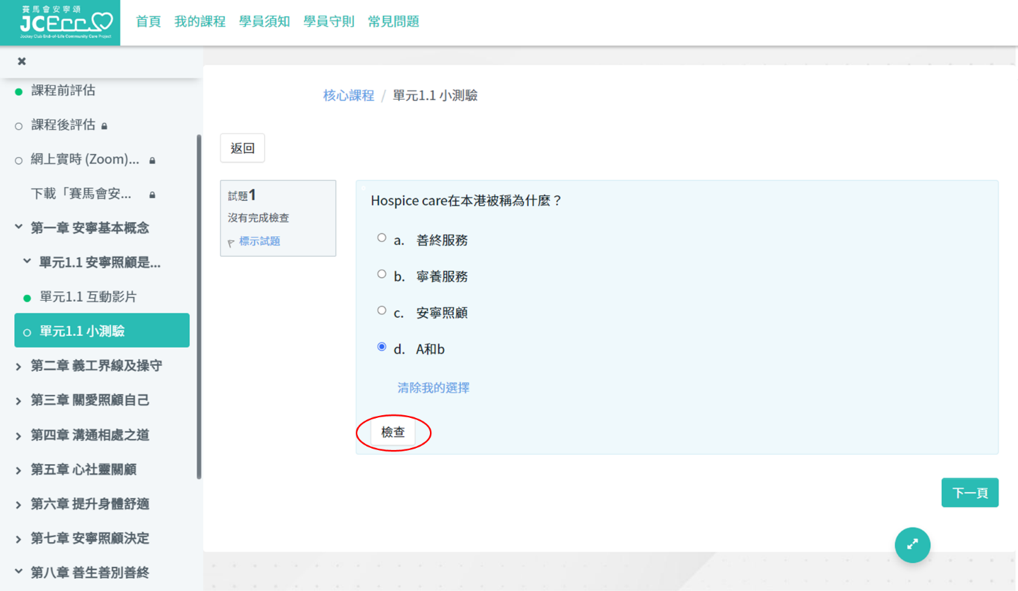 iv.學員答題選擇後,請必須按【檢查】檢查自己所選的答案是否正確才跳至下一條題目。