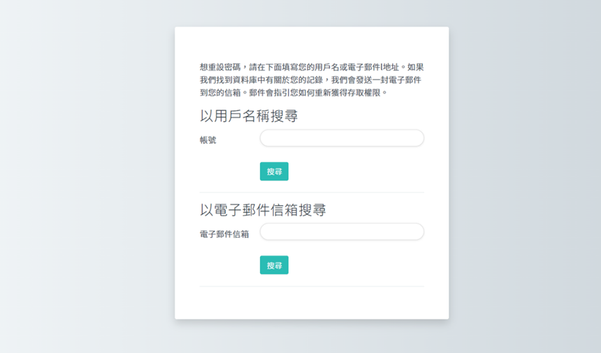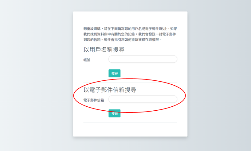 ii.選擇以以用戶名稱搜尋 或 以電子郵件信箱搜尋來重設密碼