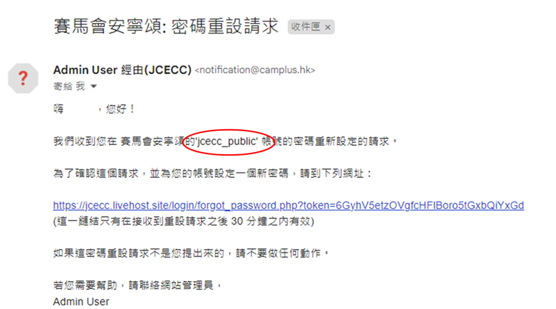 iv.請檢查所登記的電郵地址是否收到密碼重設的電郵,電郵上將顯示你的帳號名稱,學員便可使用電郵上的帳號登入平台。