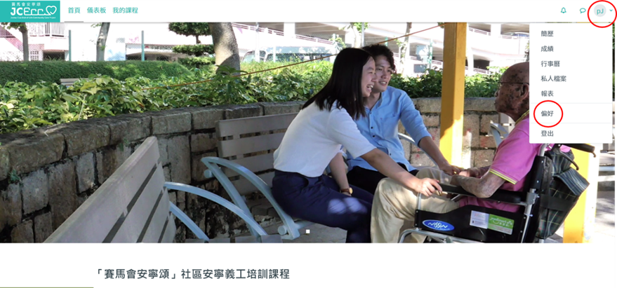 i.首先,學員按下右上自己的名字,再按【偏好】