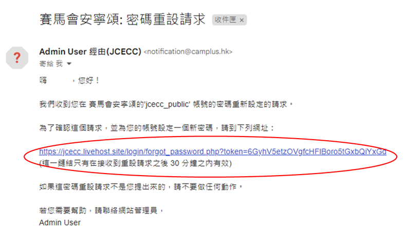 iv.請檢查所登記的電郵地址是否收到密碼重設的電郵,按電郵指示重設密碼,按電郵指示重設密碼