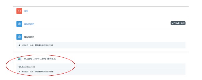 ii. 進入課程的簡介後,如果學員達到報讀的條件後,便可直接按下【網上實時 (Zoom) 工作坊】,否則將無法按下。